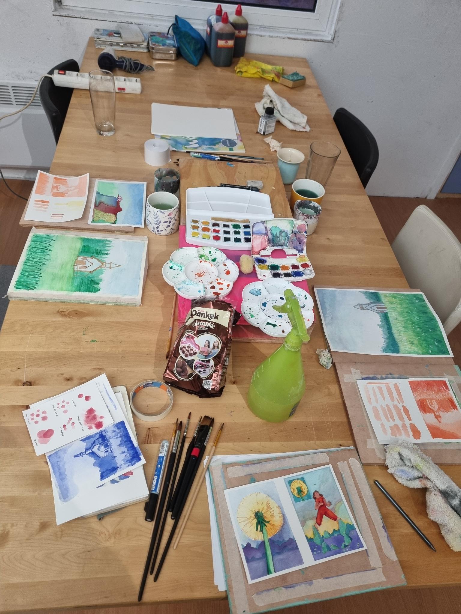 Deelnemers leren de basis van waterverf/aquarel: materiaalgebruik, penseel- en penstreken, schaduw en kleur, en het opbouwen van een eenvoudige illustratie of schildering.