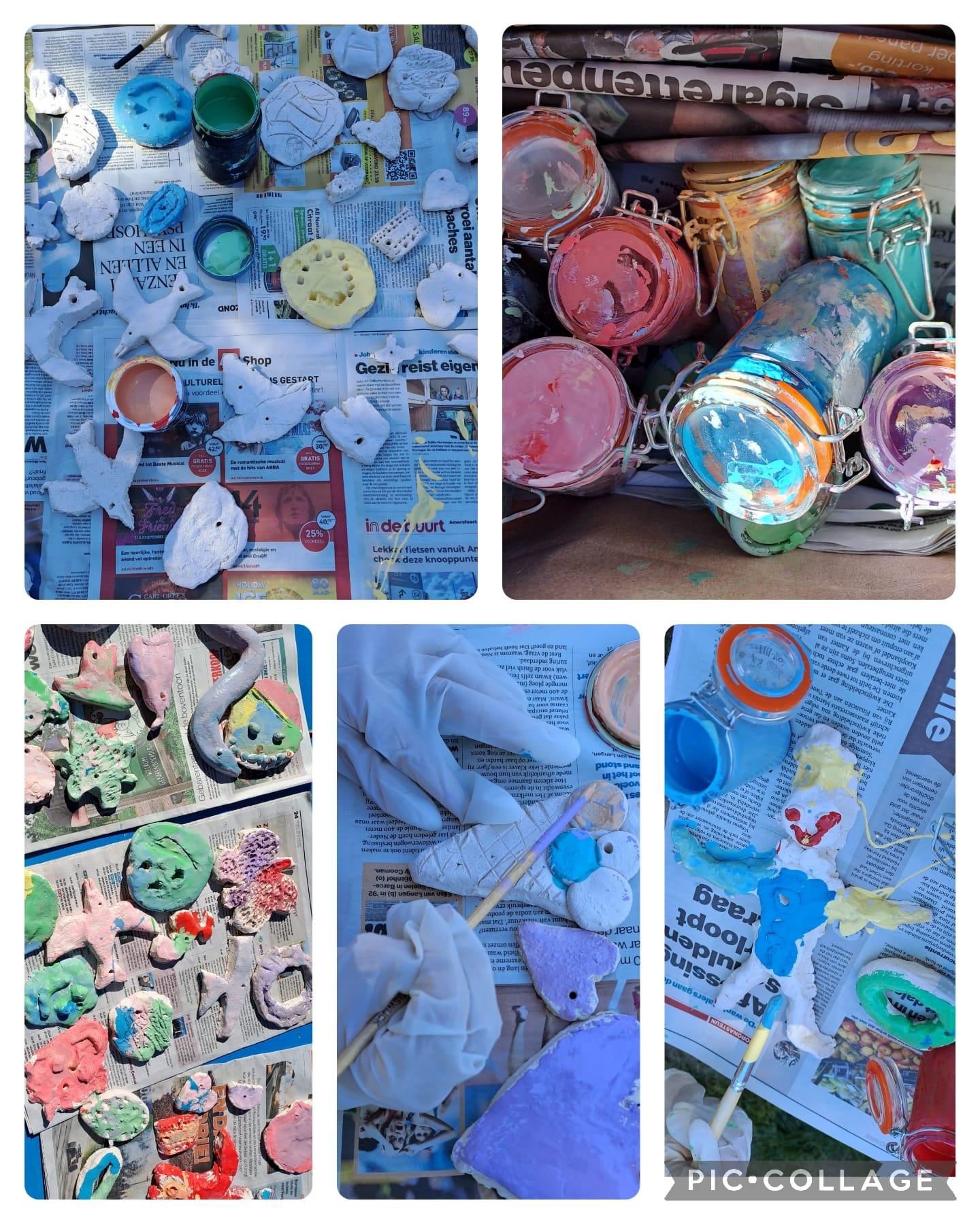 Ik geef kunstlessen en cursussen op scholen, in buurthuizen en in mijn atelier. Met kleuters werk ik bijvoorbeeld aan houten dinosaurussen, terwijl ik met de middenbouw mobielen van het sterrenstelsel maak. In mijn atelier geef ik onder andere tekenlessen en een uitgebreide waterverfcursus.